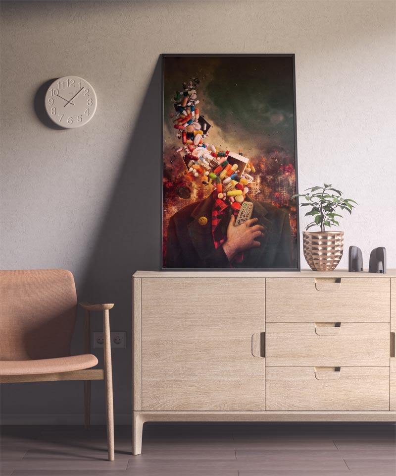 Yes! My surreal wall art is perfect for interior design projects, adding a touch of sophistication and creativity to any space. I can also create custom pieces to fit your specific design needs, and I’ll love to do so – I am an interior design aficionado and I’m always thrilled to partake in interior design projects!